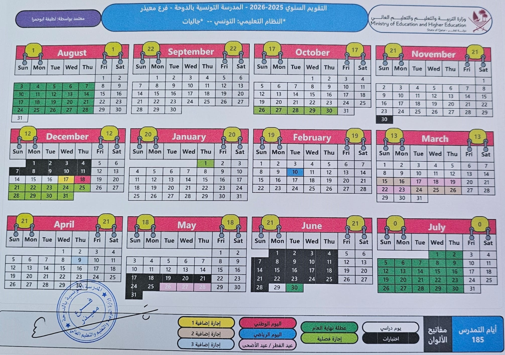 الروزنامة المدرسية للسنة الدراسية 2025-2026