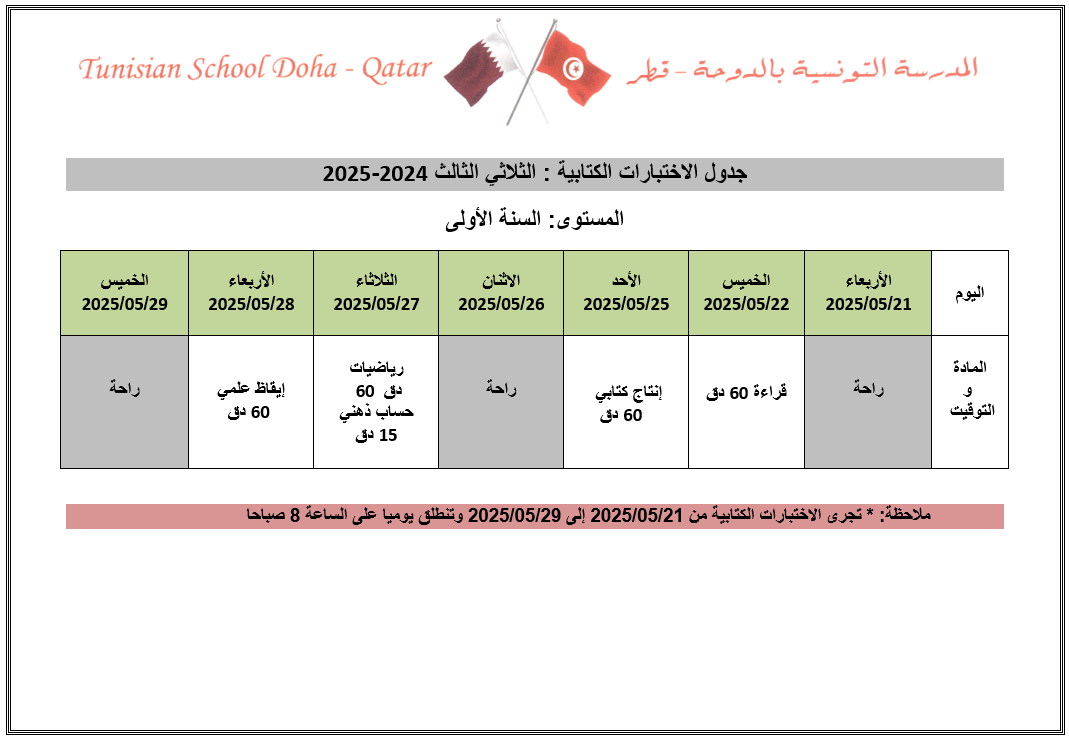 روزنامة اختبارات الابتدائي - الثلاثي الثالث 24-25