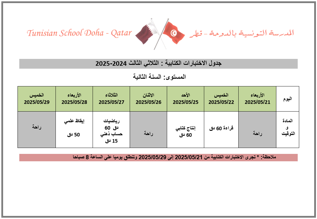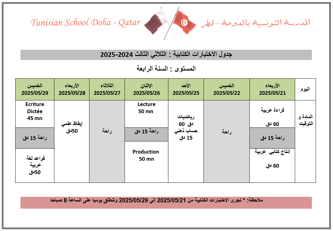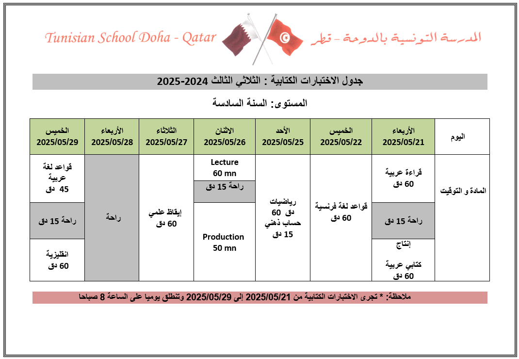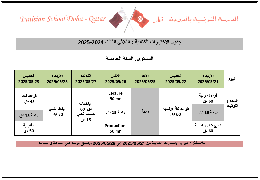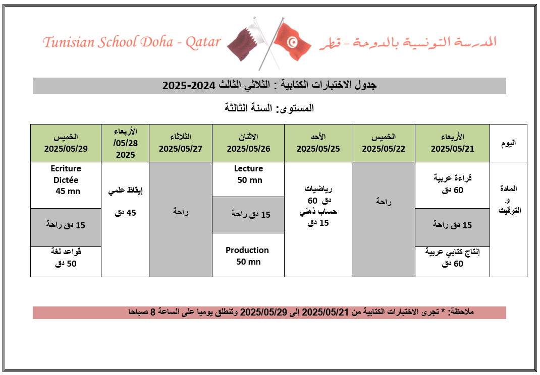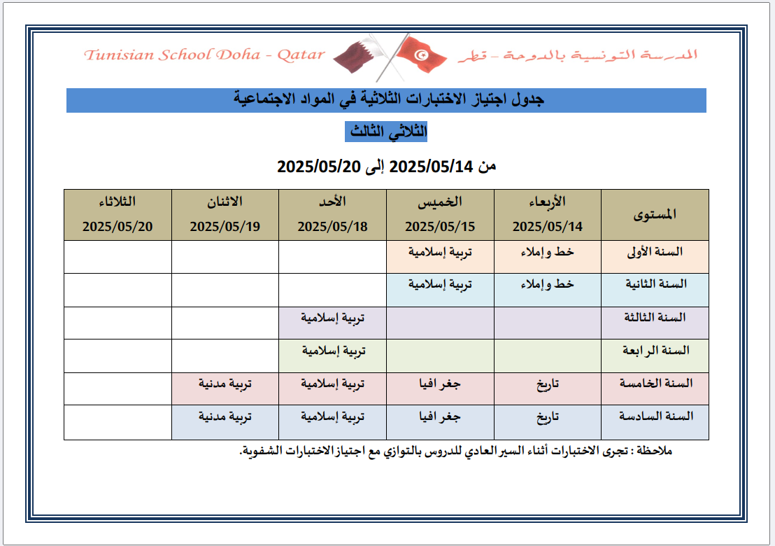لتحميل روزنامة اختبارات الابتدائي للثلاثي الثالث 2024-2025