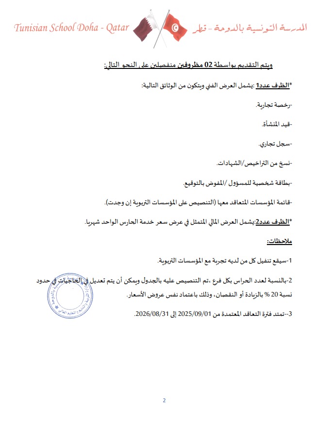 اعلان مناقصتين في مجال الحراسة والتنظيفات
